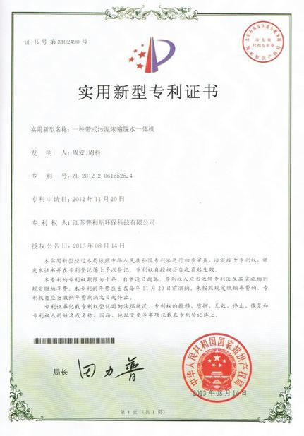 Jiangsu Ponis Environmental Technologies Co.,Ltd. is a high-tech enterprise in Jiangsu Province specializing in the manufacture of high-end municipal wastewater treatment equipment. It is also a professional manufacturer of non-standard water treatment equipment and a service provider offering continuous support. The company boasts two production bases (totaling 10,000 square meters, focusing on production and assembly, respectively) and a comprehensive R&D center with a fully equipped laboratory. Its extensive product line encompasses 11 series and a variety of specific equipment, including belt thickeners, mechanical screens, integrated pumping stations, and various dosing systems. These products meet the wastewater treatment needs of various industries, including municipal wastewater treatment, petroleum refining, and steel pickling. The company is ISO9001 certified for quality, environmental, and occupational health and safety management systems, and holds over 20 patents. Leveraging its strong technical expertise and proven business model, the company ensures a stable supply chain from product design to manufacturing and commissioning, and is committed to providing comprehensive support to its customers.